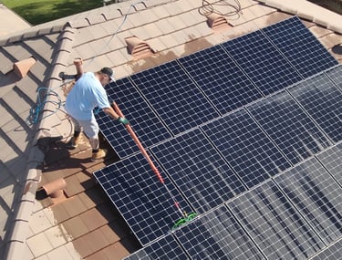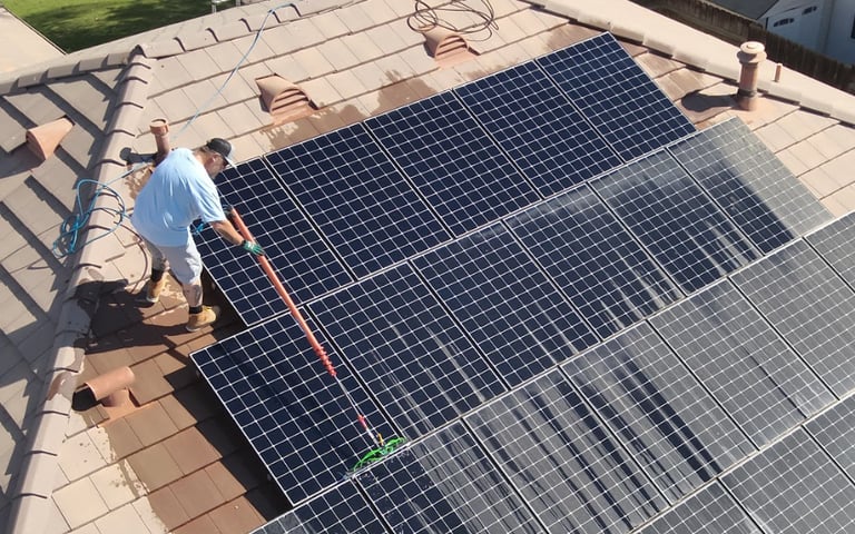 Our professional solar panel cleaning service enhances your system’s efficiency by safely removing dirt, dust, and debris that block sunlight. We use specialized equipment and pure water techniques to protect your panels and maximize their energy output.